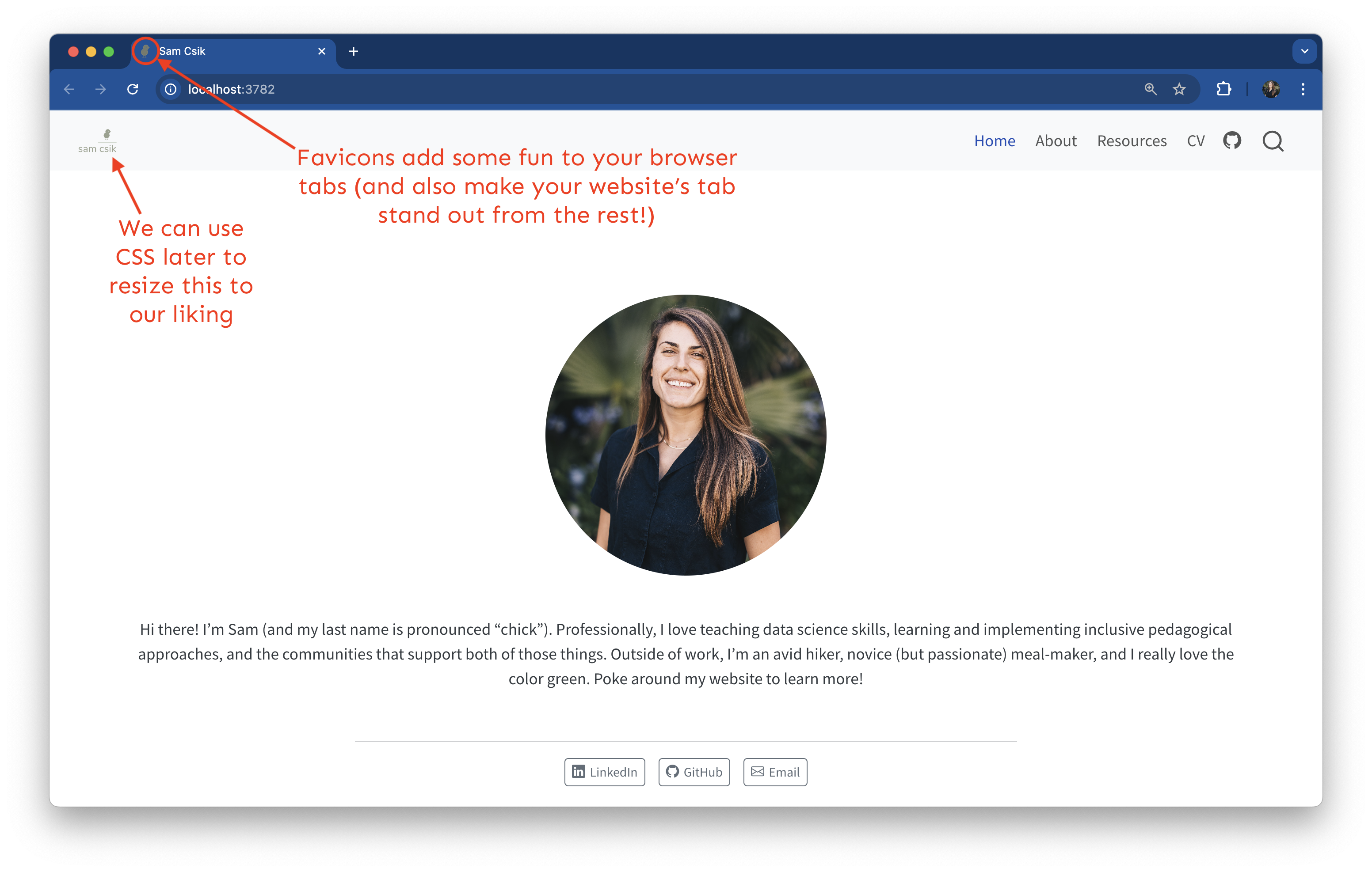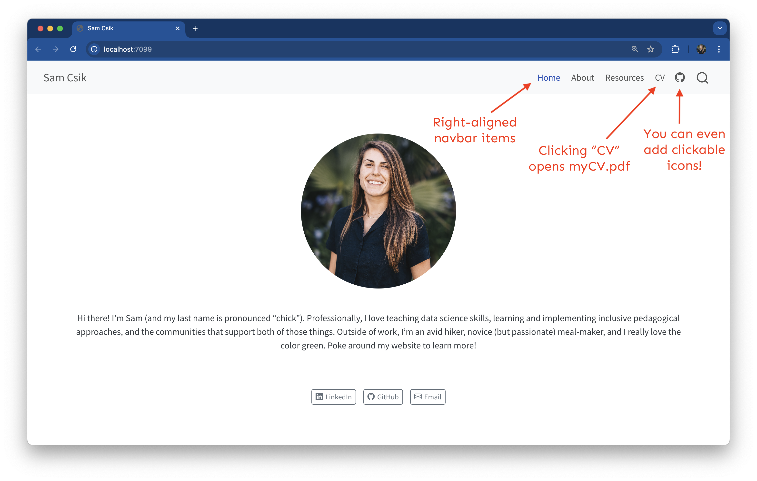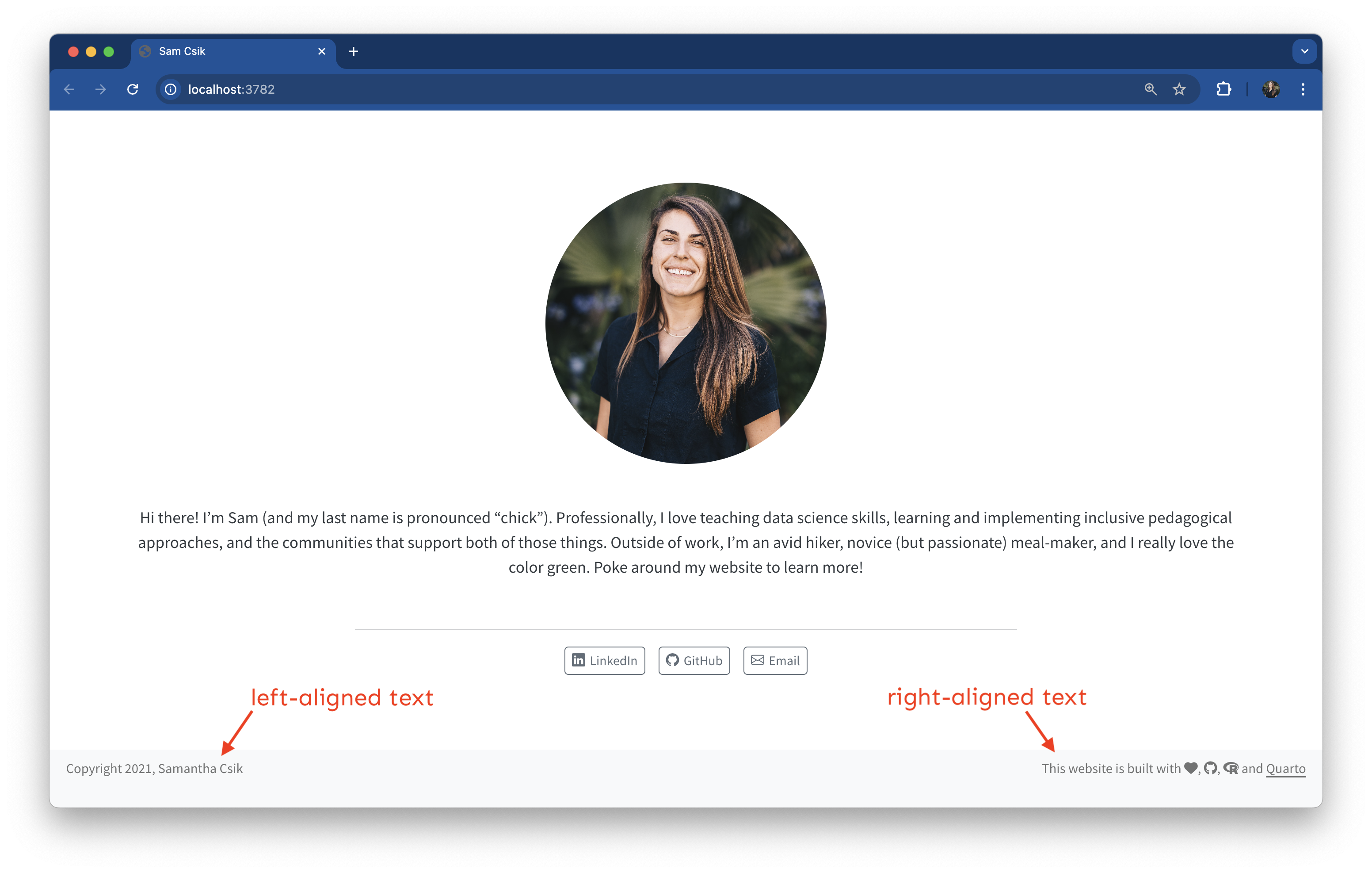 styles.cssfile that comes with every new Quarto site. This allows you to fine-tune the appearance of your site.Creating a