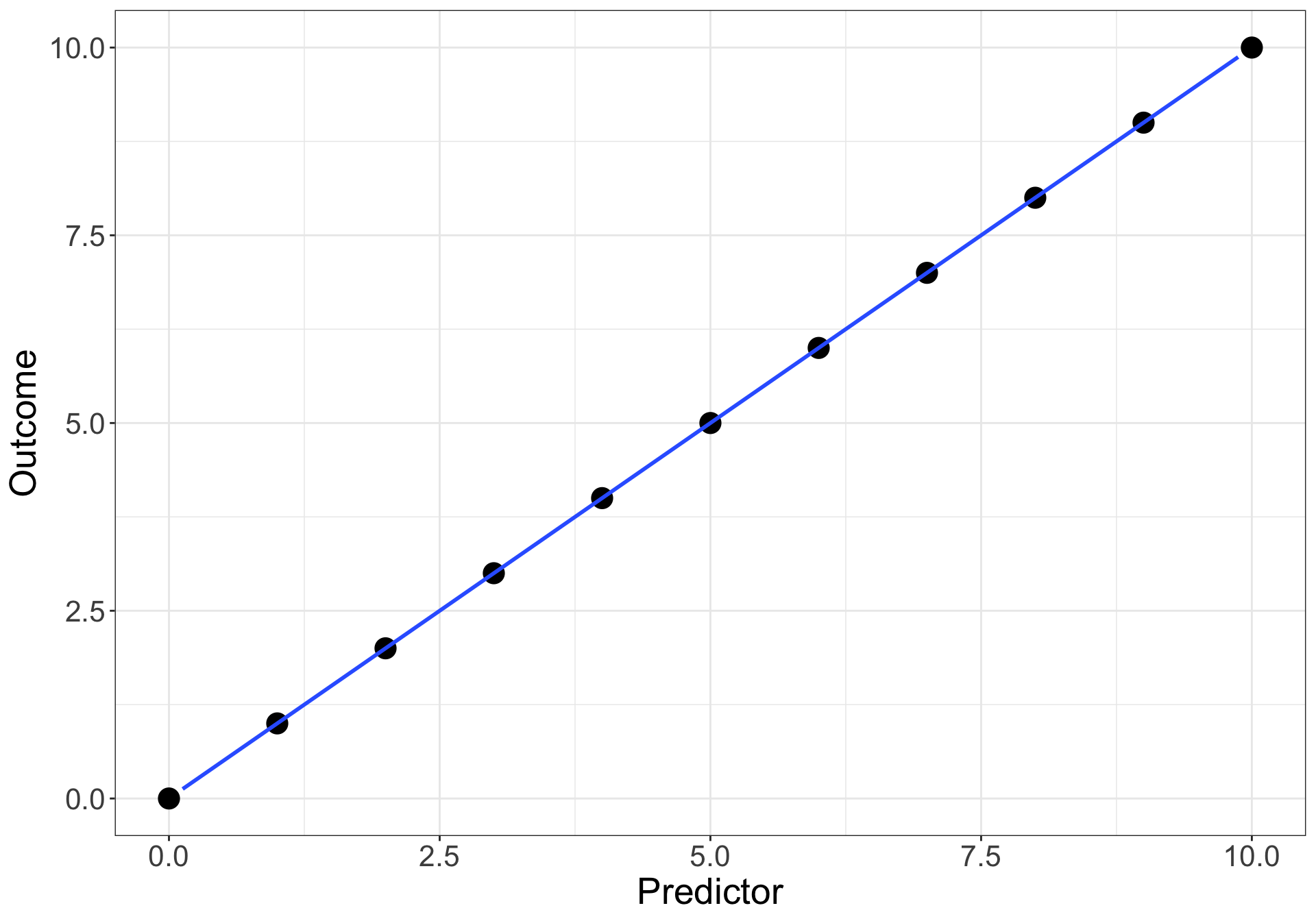 \[Outcome = 0 + 1 * Predictor + 0\]