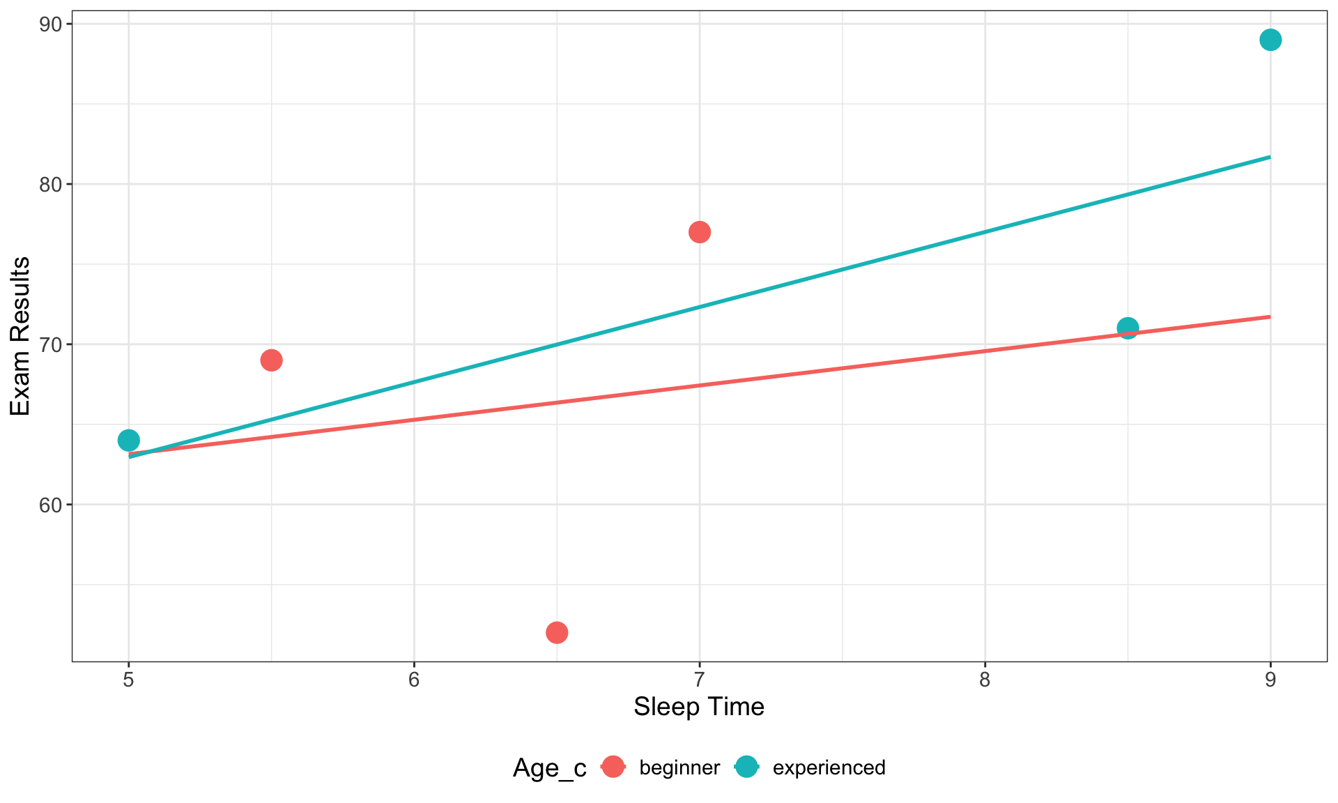 \(H_{a_{3}}\): The effect of Sleep Time on Exam Results is higher for experienced than for beginner students