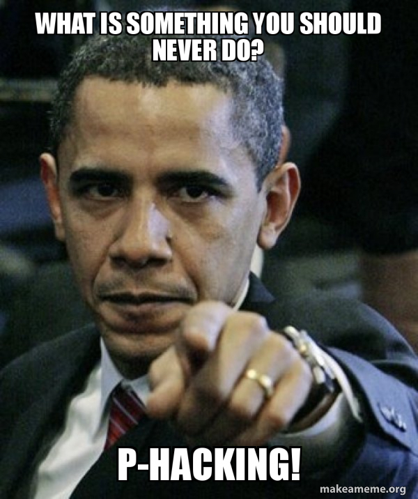 \(p\)-values should only be produced to test an hypothesis that has been already formulated, any other is use is called \(p\)-hacking.