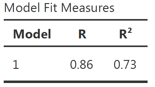 The Model Fit Measure table tests the prediction accuracy of your overall model (all predictors taken into account).