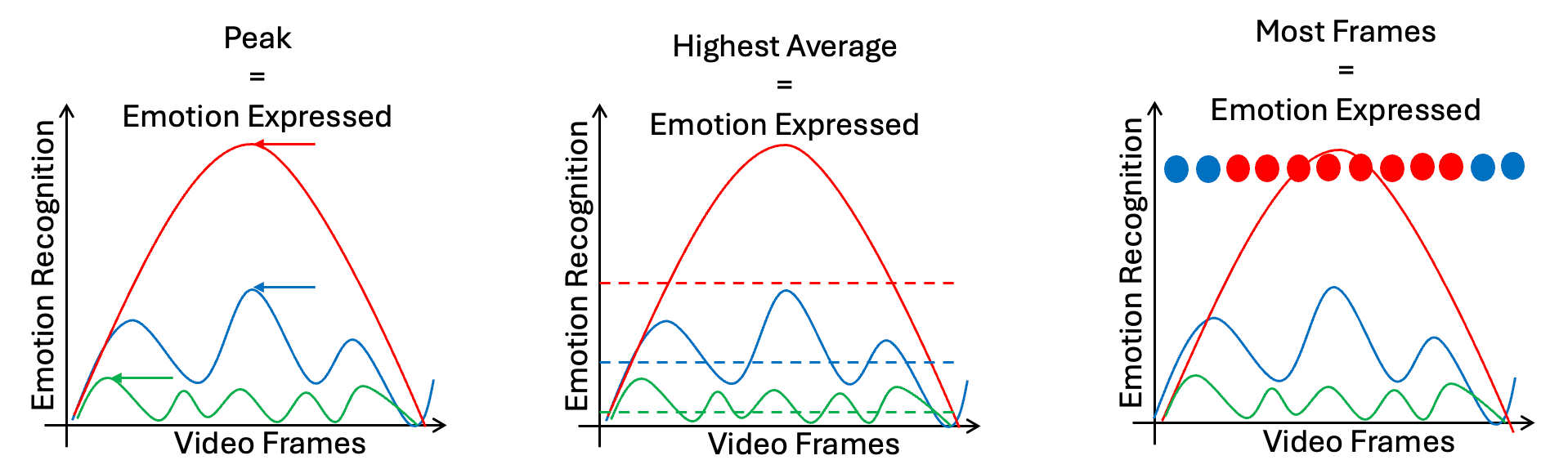 For each video, we aim to identify the expressed emotion using three distinct methods (as described in Dupré, 2021):