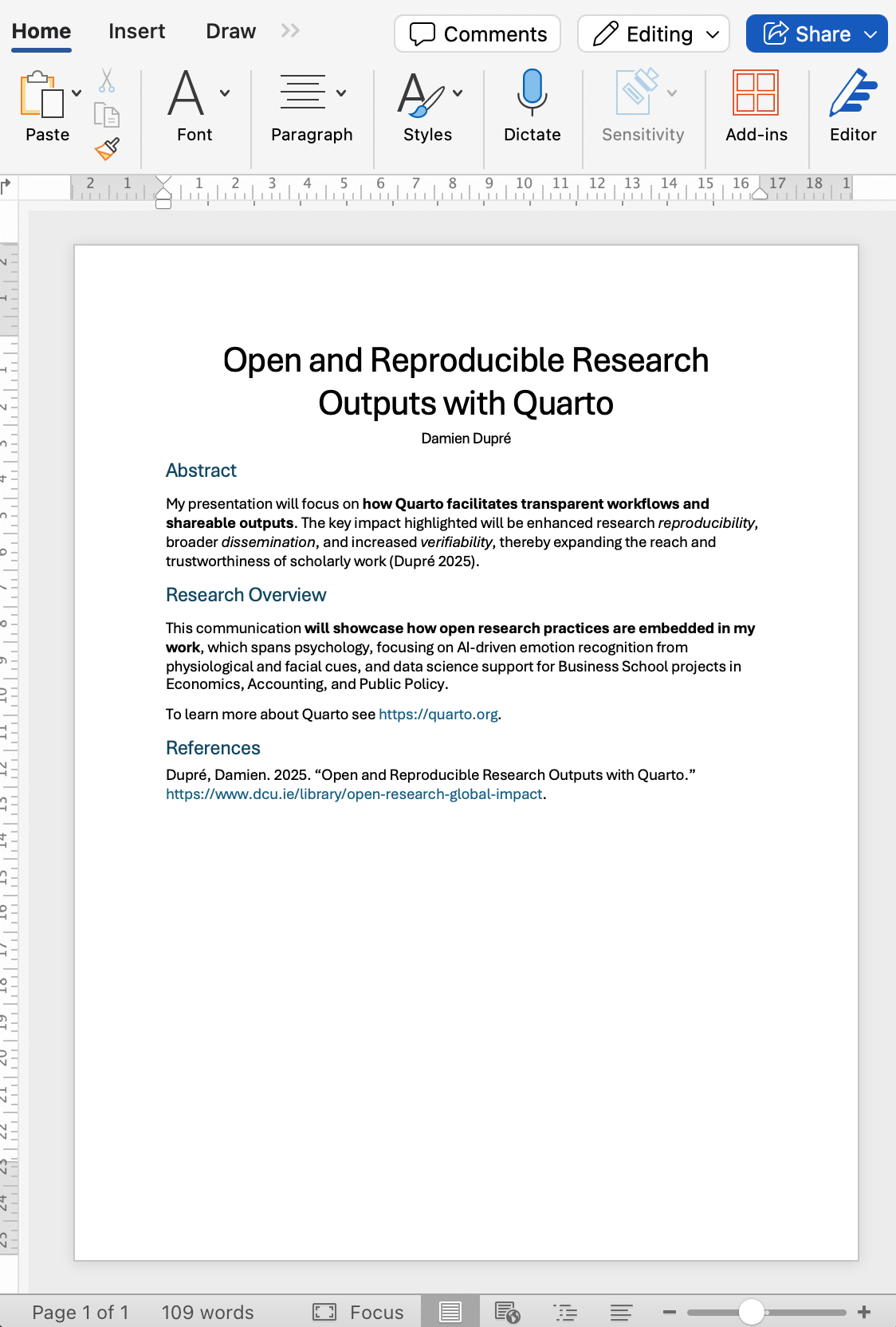Quarto is an open-source scientific and technical publishing system that builds on standard markdown with features essential for scientific communication.