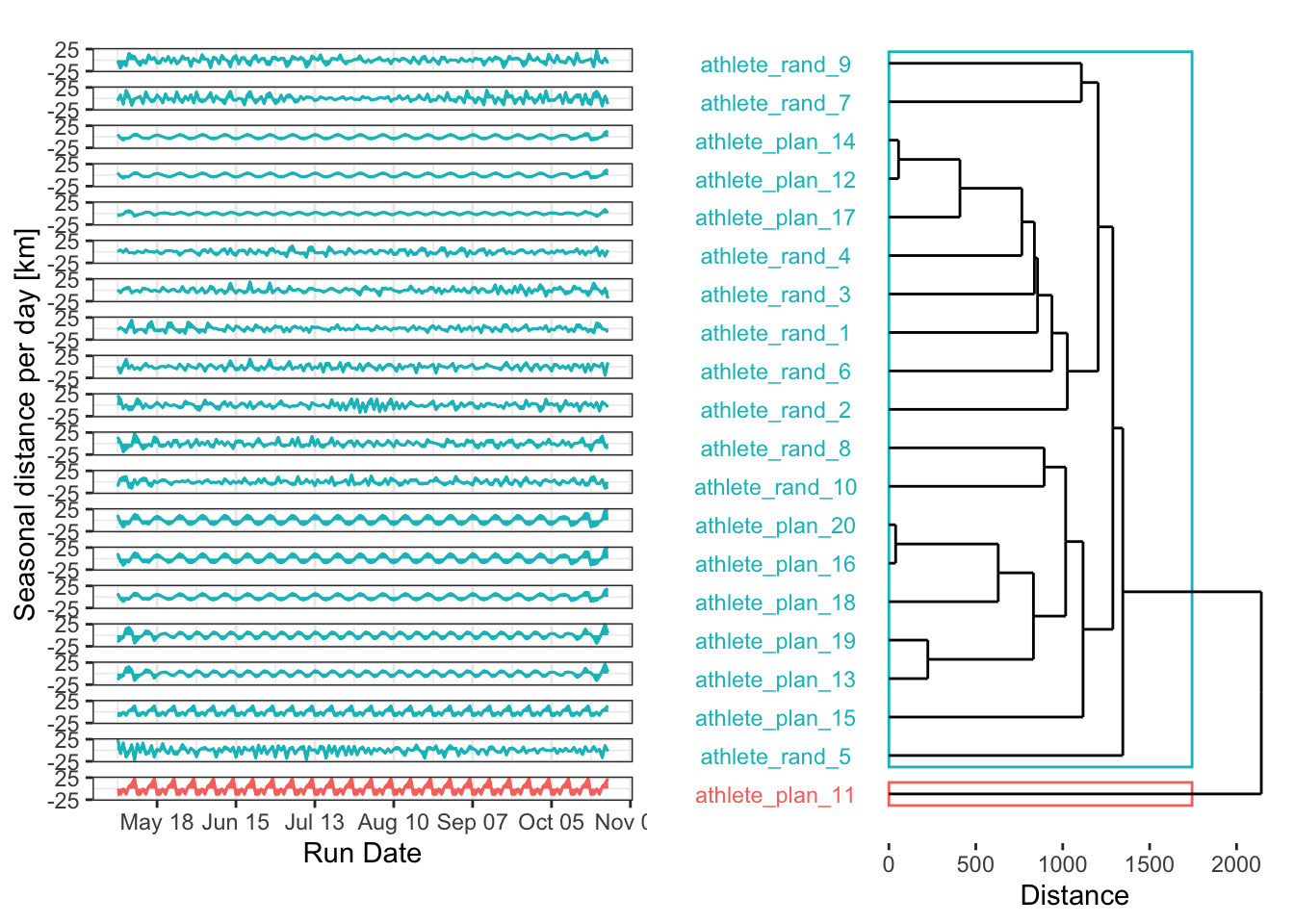 <- data.frame(dtw_model@centroids, rundatelocal = seq.Date(date_marathon - 175, date_marathon - 1, by = "day")) %>%